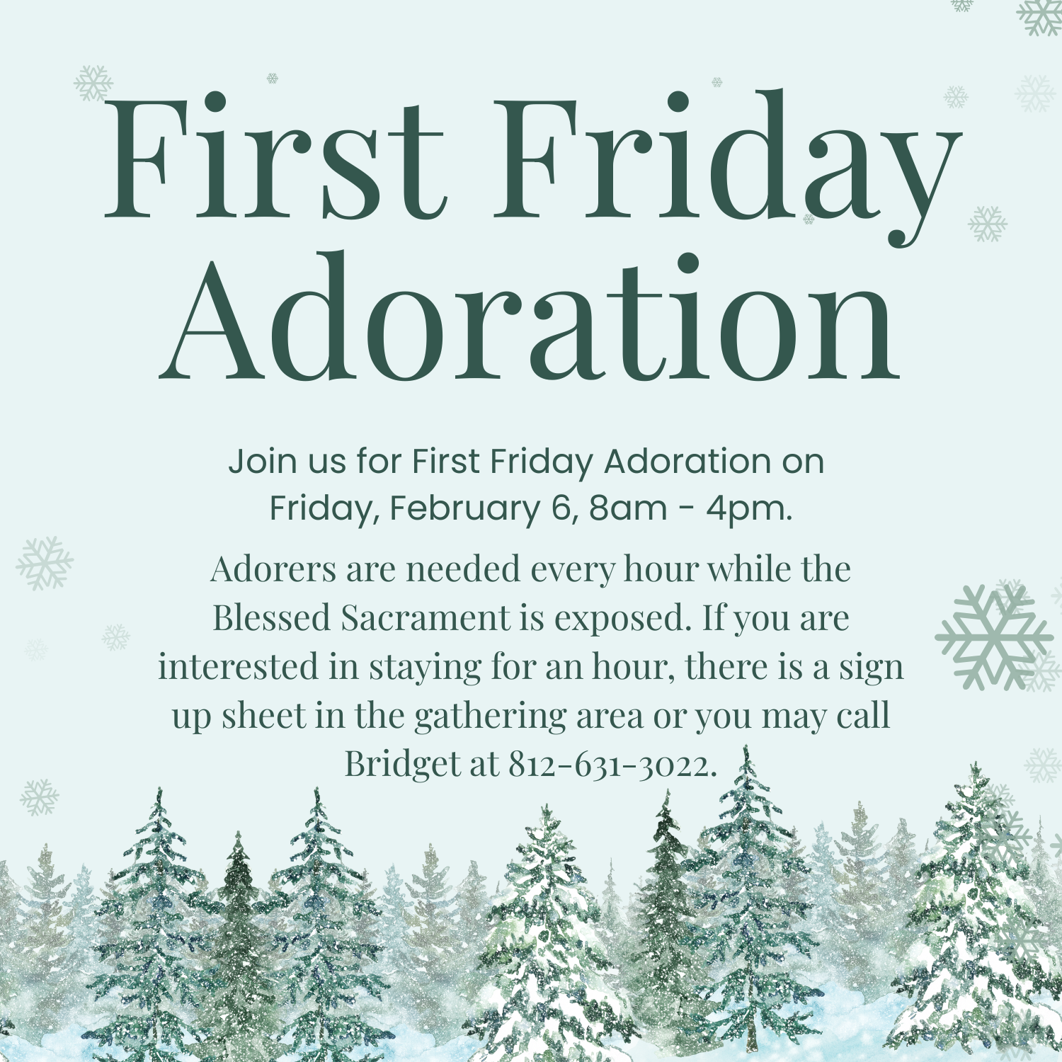 Wednesday: Adoration 5:00pm, Mass 6:00pm