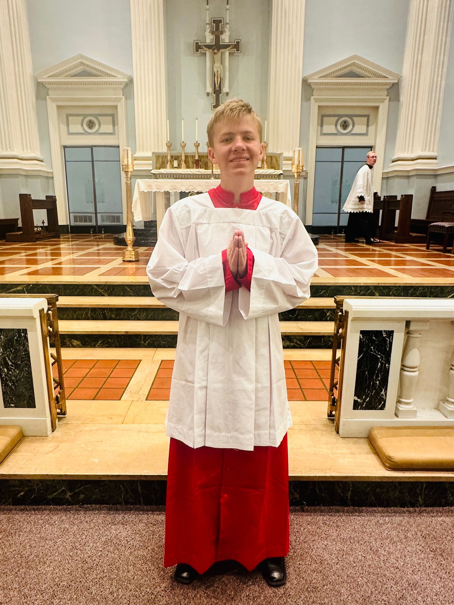 Youth in grades six through high school are welcome to assist as an altar server during Mass. Two servers are assigned for Saturday and Sunday Masses while more assist on special occasions. New server training is provided throughout the year. Servers are scheduled at the Mass their family normally attends. Please call the parish office if you have a child that is interested in becoming an Altar Server.